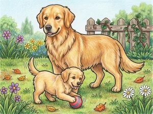 ラブラドールに近い雰囲気で、親子の犬ぬりえも見たいときに
