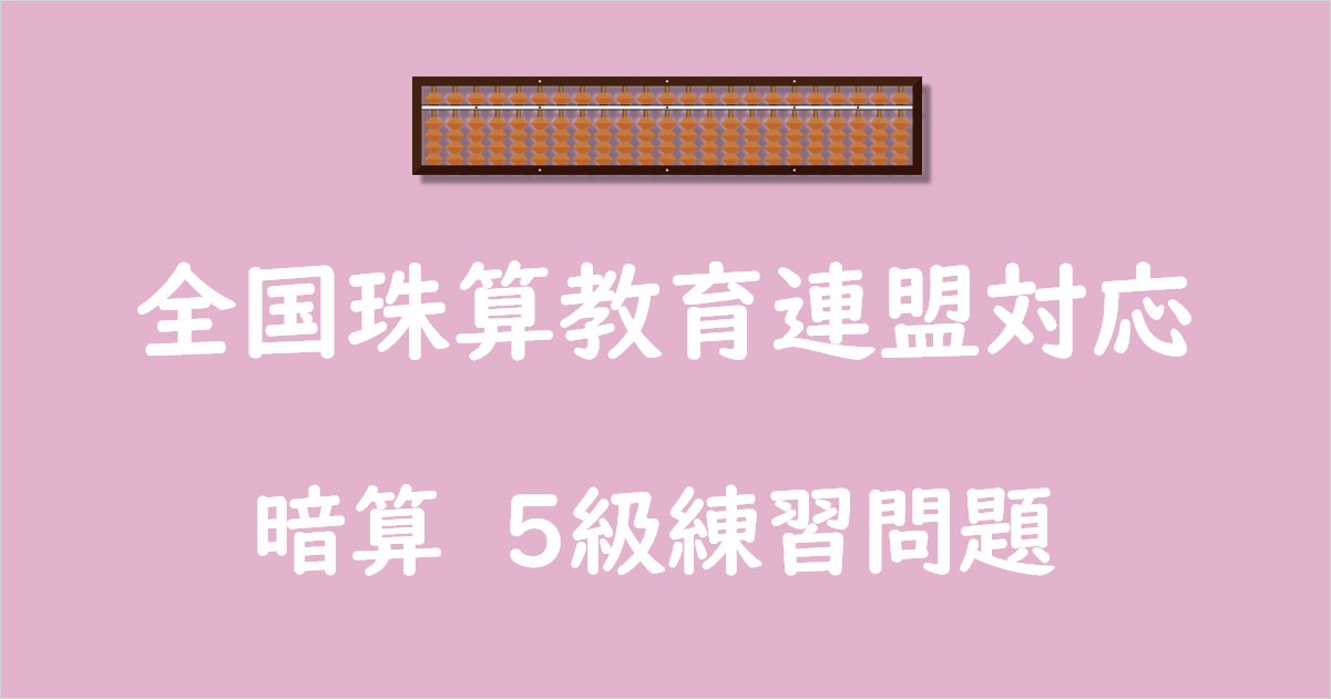 このページでは、全国珠算教育連盟対応の「そろばん暗算5級」練習問題を無料でダウンロードできるプリントを紹介しています。