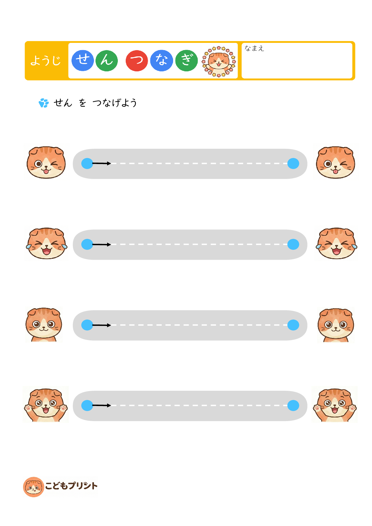 | 点つなぎ | 点を直線で結んで線をまっすぐ書く練習を行います。 対象年齢:3~6歳 | ![]() |
