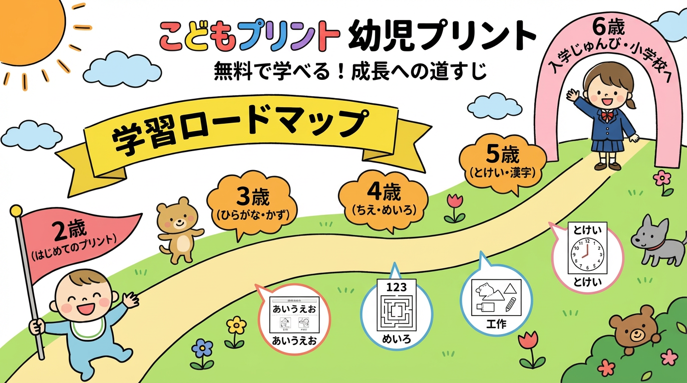 小学校入学前の幼児期は、学習の基礎となる「鉛筆を扱う力」や「机に向かう習慣」を身につける大切な時期です。こどもプリントでは、2歳頃から始められる運筆練習から、就学準備に最適なひらがな・数字まで、成長に合わせて選べる無料プリントを多数ご用意しています。